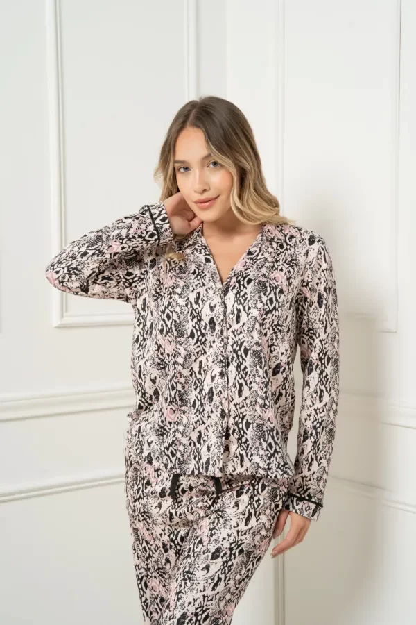 Set Pijama Camisa y Pantalón Modal Gamuzado Estampado